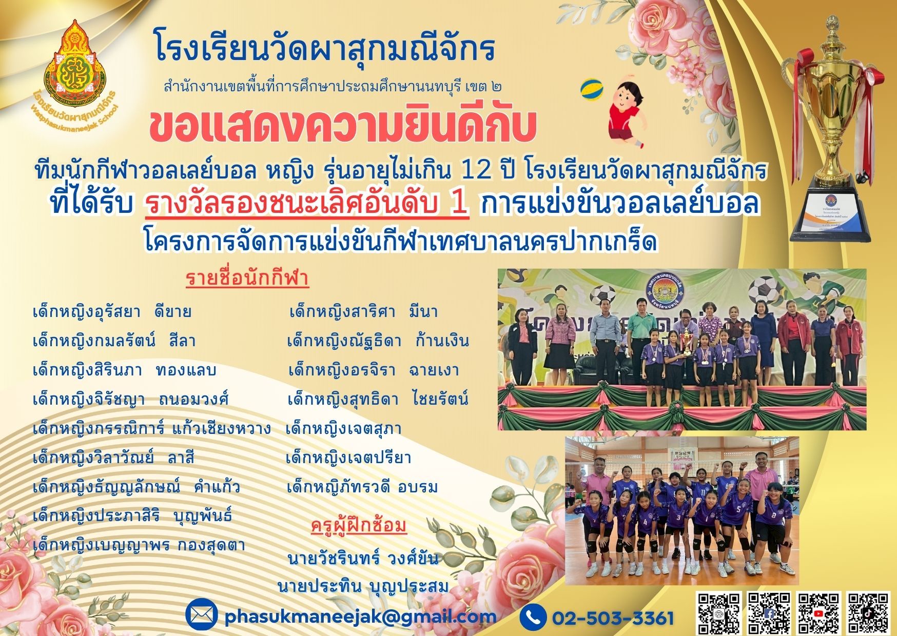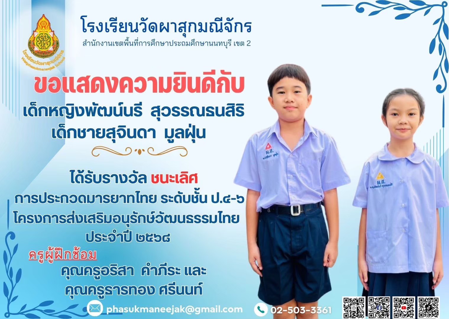 มีความคิดเห็นว่าโรงเรียนวัดผาสุกมณีจักร เอาใจใส่นักเรียนดีมาก (2787/0) | 10 ก.พ. 58 |