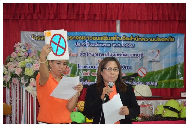 เมื่อวันที่ 18 มิถุนายน 2558 สำนักงานขนส่งจังหวัดนนทบุรี จัดกิจกรรมอบรม "โครงการสนามจราจรเยาวชน เสริมสร้างสำนึกความปลอดภัย ประจำปีงบประมาณ 2558" ให้กับนักเรียนโรงเรียนวัดผาสุกมณีจักร จำนวน 100 คน ณ โรงเรียนวัดผาสุกมณีจักร