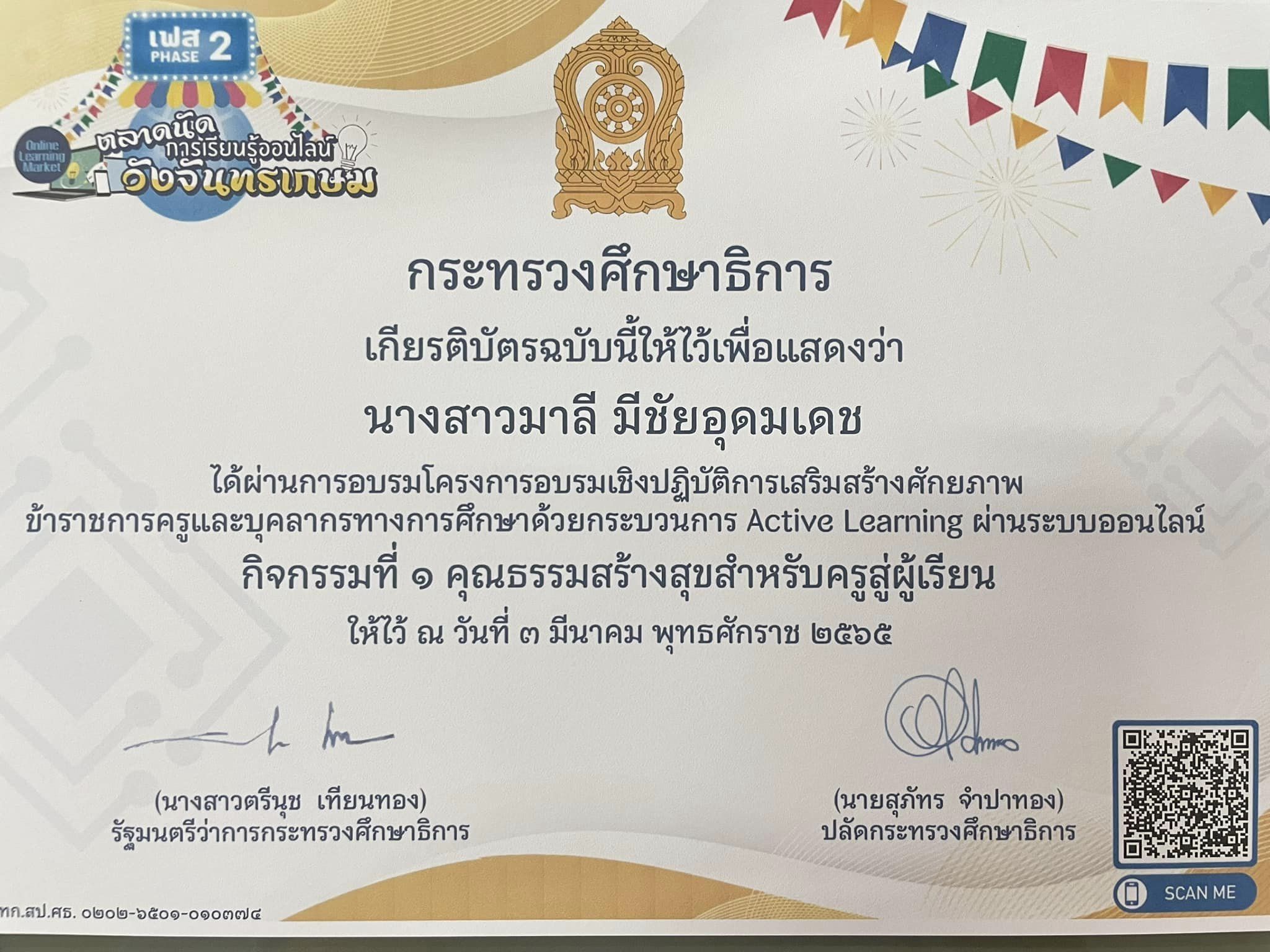 ชื่อผลงาน : คุณธรรมสร้างสุขสำหรับครูสู่ผู้เรียน 3 มี.ค.2565
