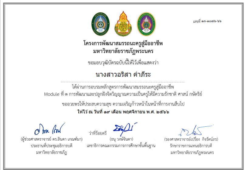 ชื่อผลงาน : โครงการพัฒนาสมรรถนะครูสู่มืออาชีพ มหาวิทยาลัยราชภัฏพระนคร