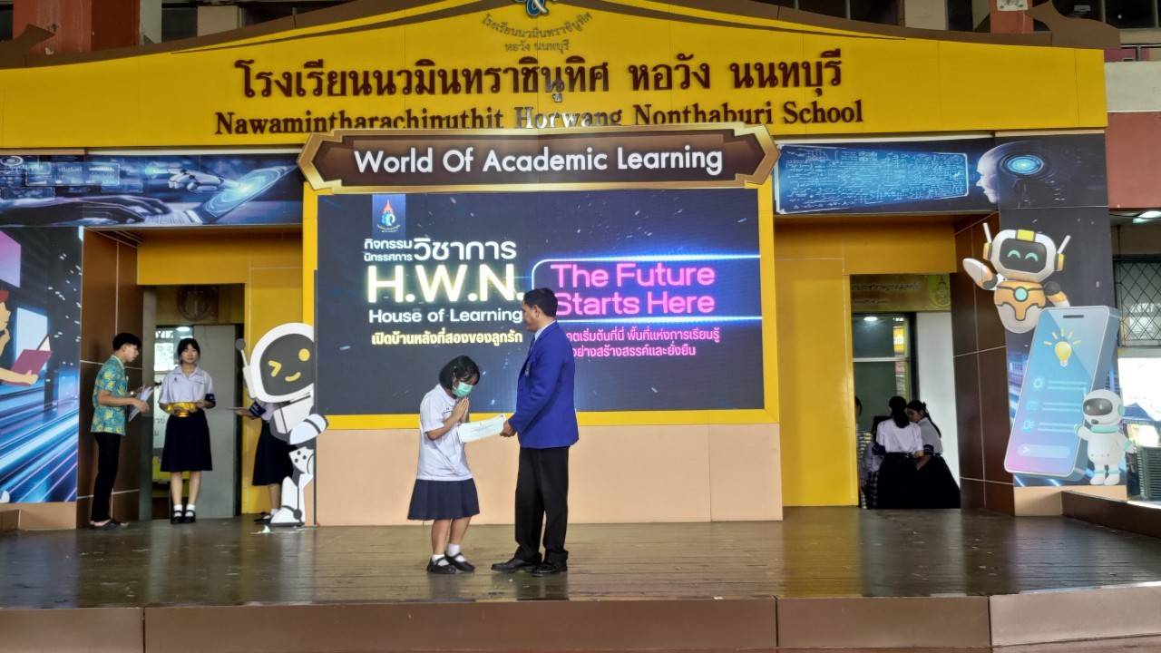 ชื่อผลงาน : รางวัลระดับเหรียญทอง ครูผู้ฝึกสอน H.W.N House of Learning : THE FUTURE STARTS HERE วาดภาพระบายสีระดับชั้น ป.1-3 ร.ร.นวมินทราชินูทิศ หอวัง นนทบุรี ประจำปี 2568