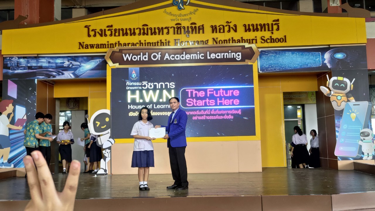 ชื่อผลงาน : รางวัลระดับเหรียญทอง ครูผู้ฝึกสอน H.W.N House of Learning : THE FUTURE STARTS HERE วาดภาพระบายสีระดับชั้น ป.4-6 ร.ร.นวมินทราชินูทิศ หอวัง นนทบุรี ประจำปี 2568