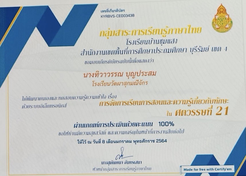 การจัดการเรียนการสอนและความรู้เกี่ยวกับทักษะใน ศตวรรษที่ 21