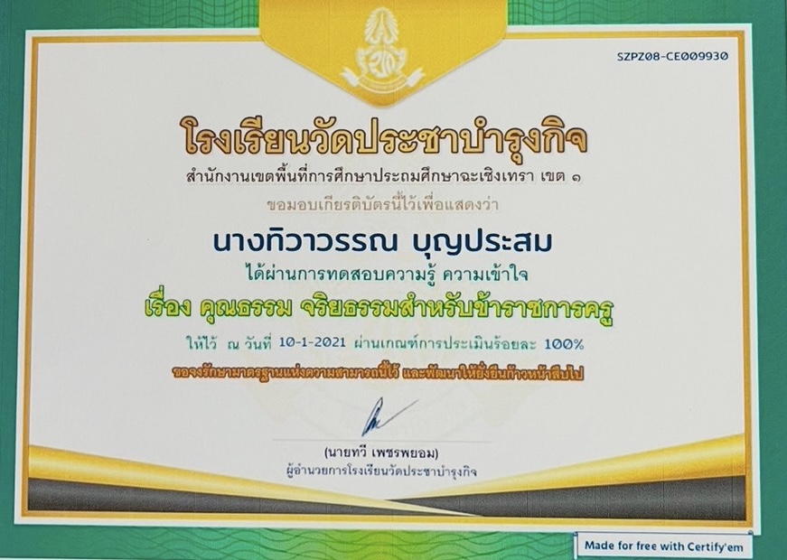 เรื่องคุณธรรม จริยธรรมสำรับข้าราชการครู