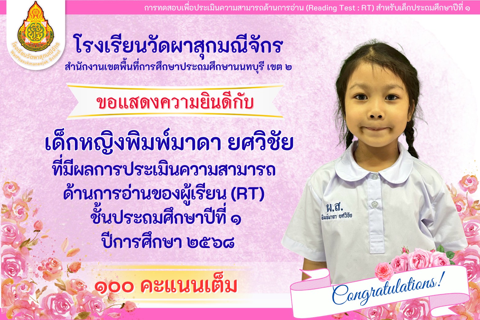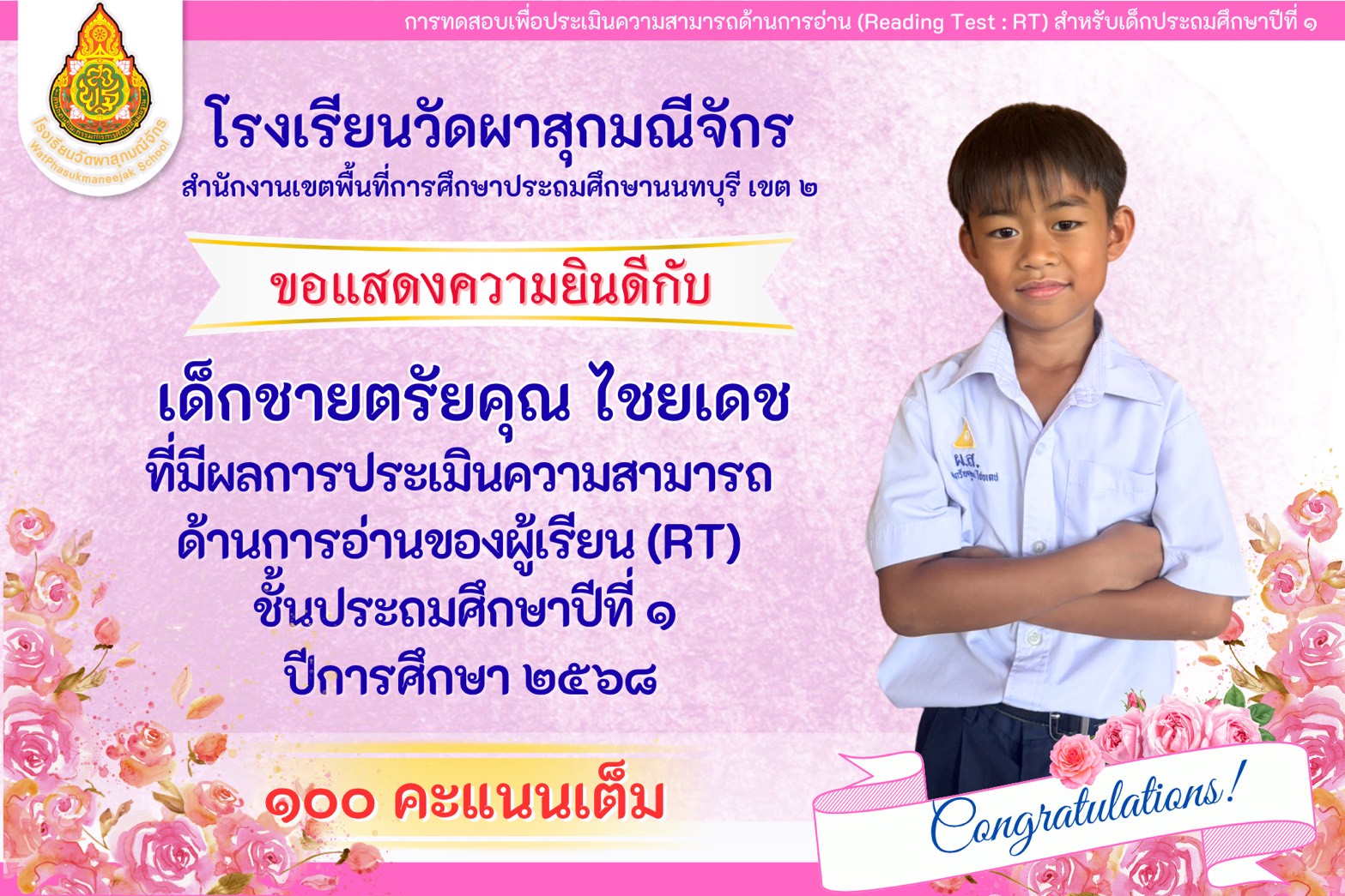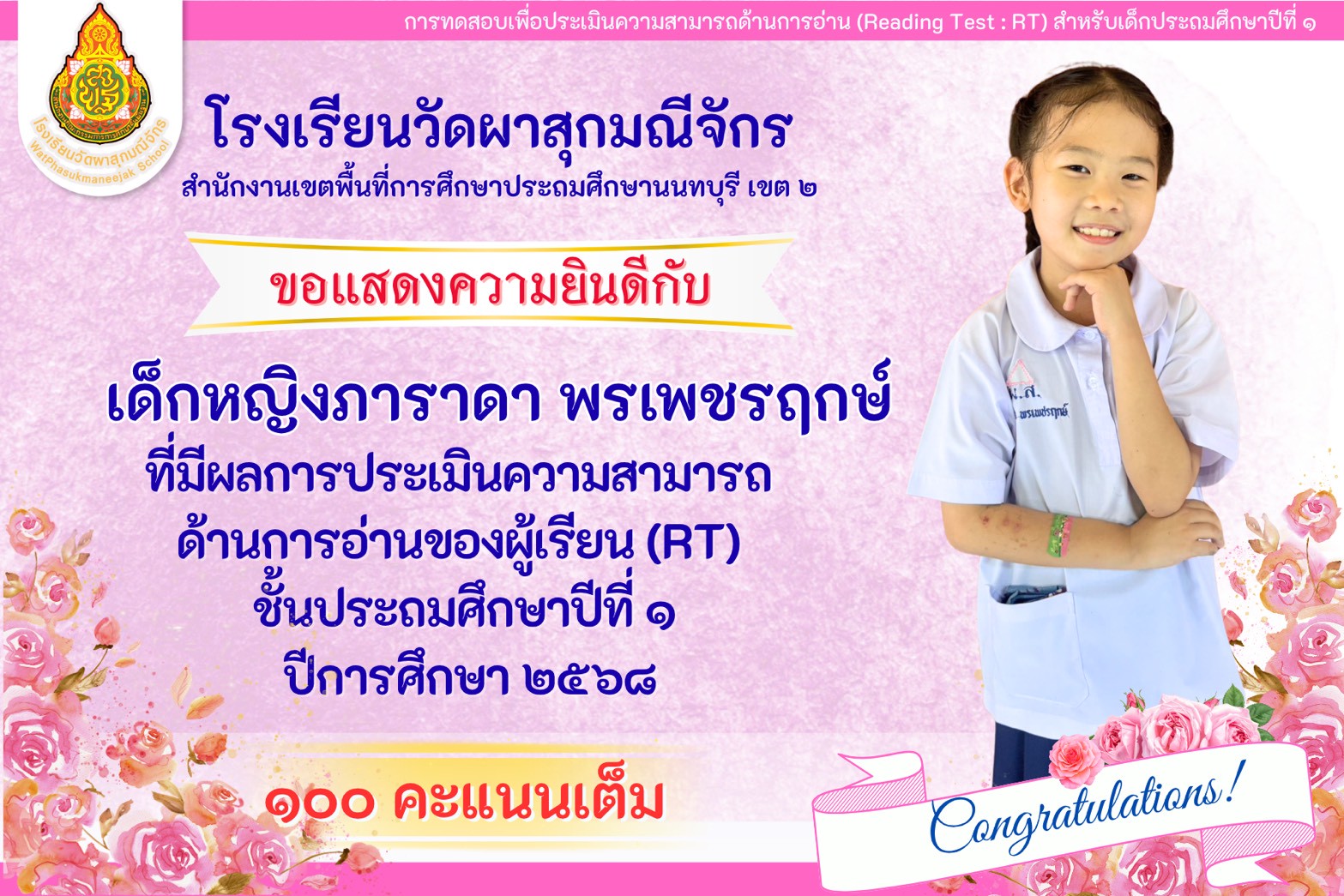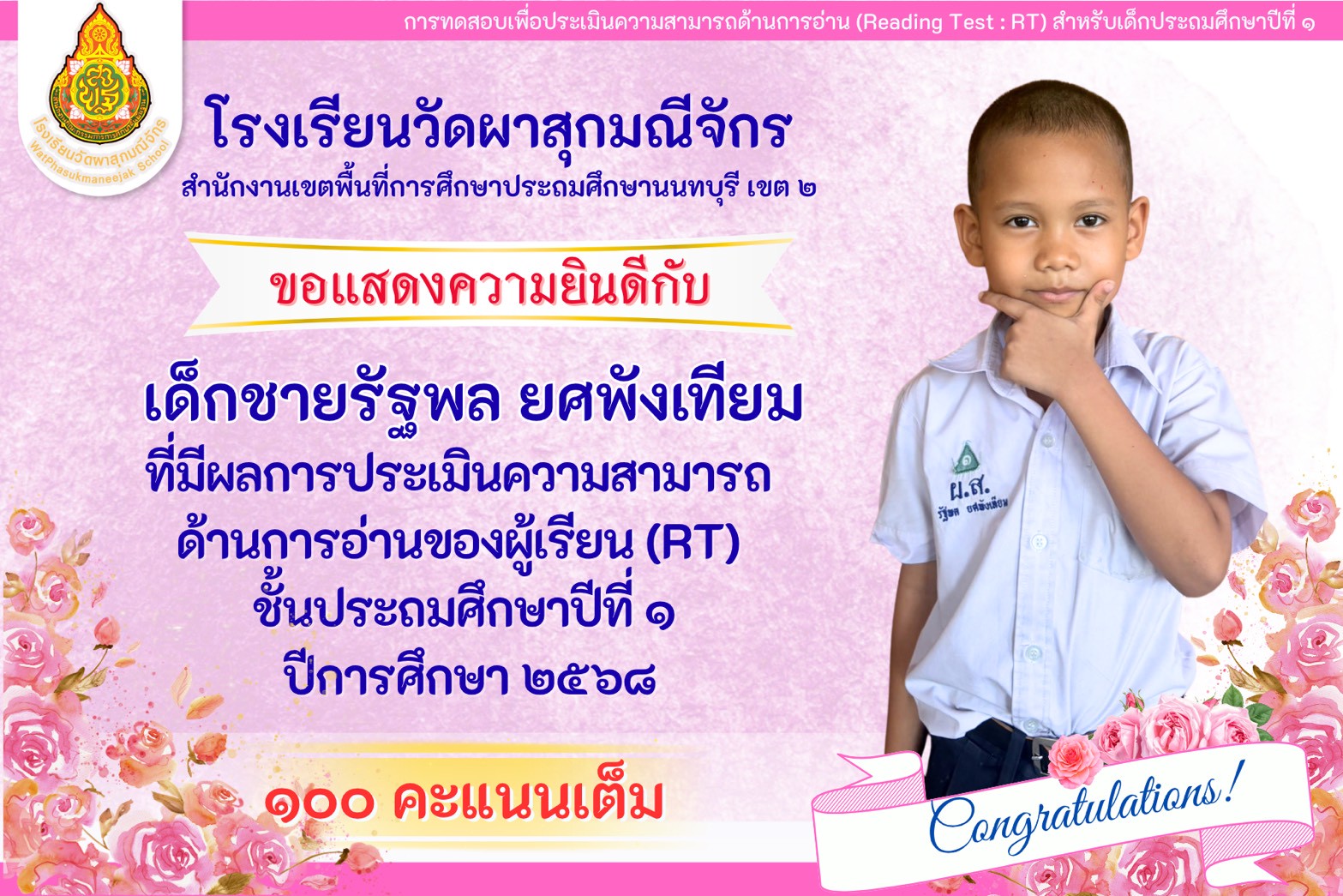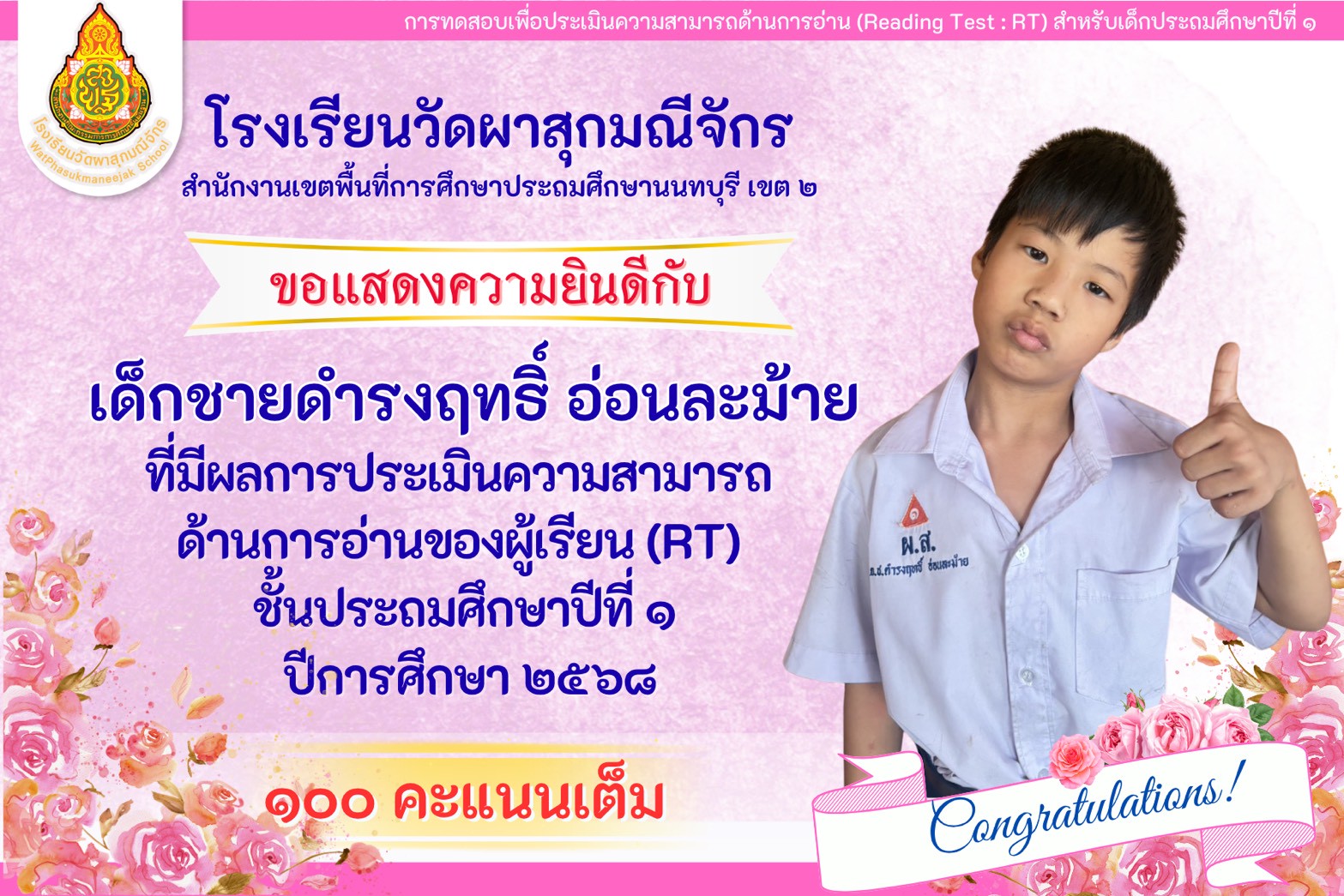 | มีความคิดเห็นว่าโรงเรียนวัดผาสุกมณีจักร เอาใจใส่นักเรียนดีมาก (2999/0) | 10 ก.พ. 58 |