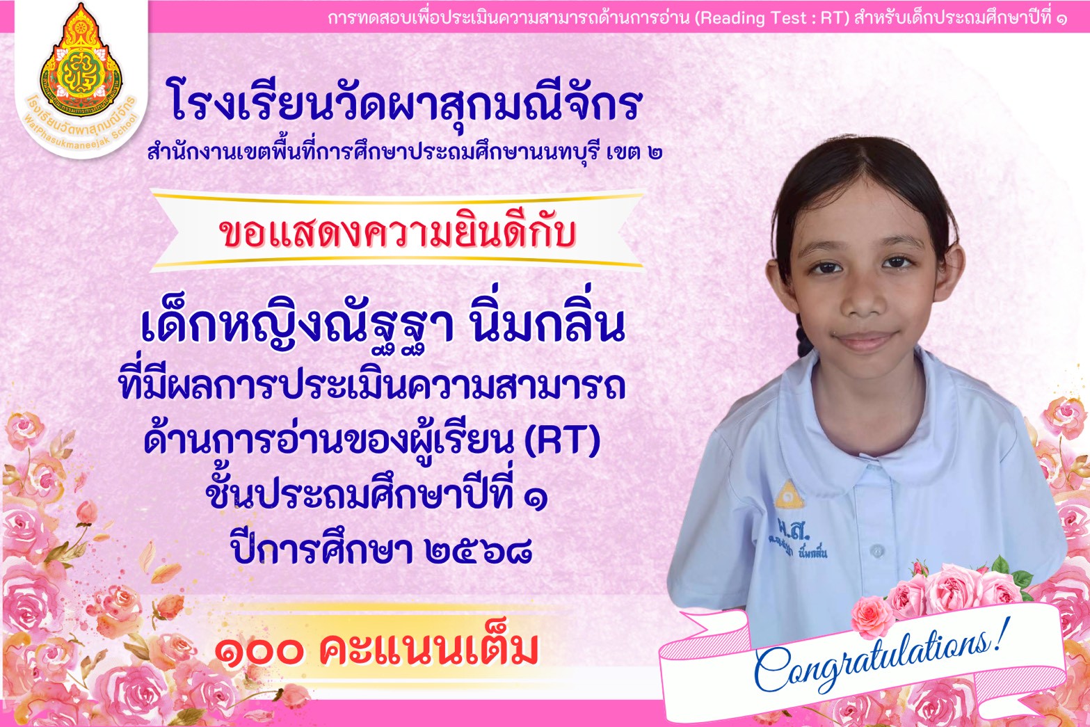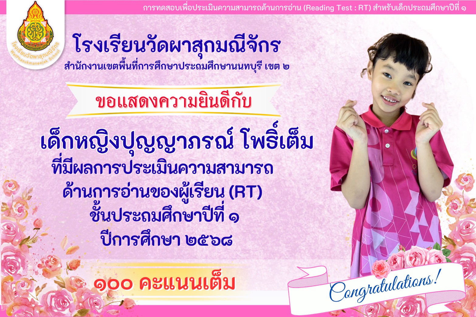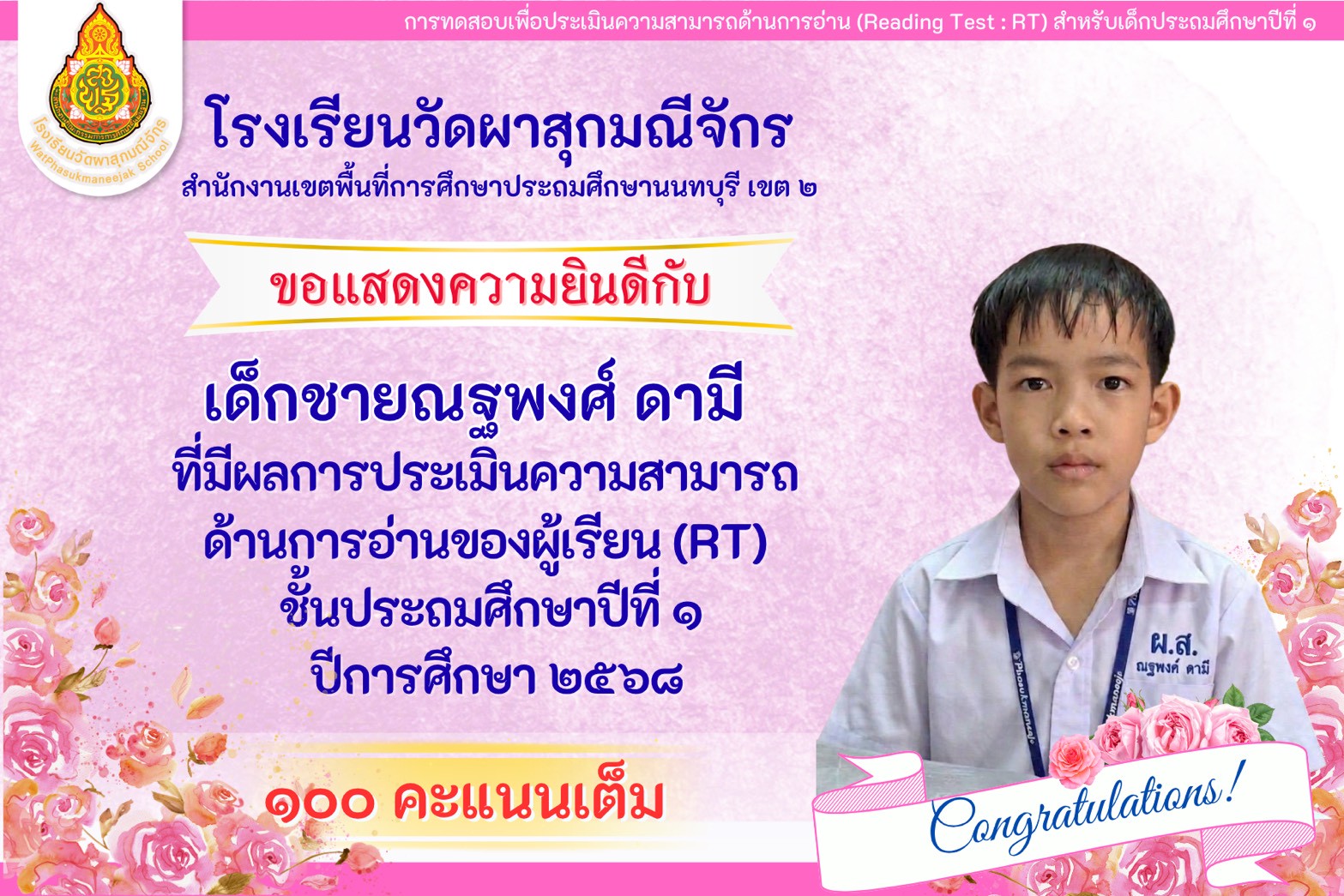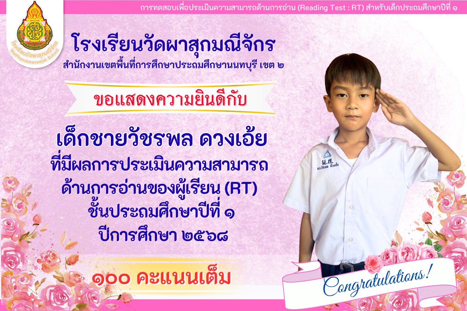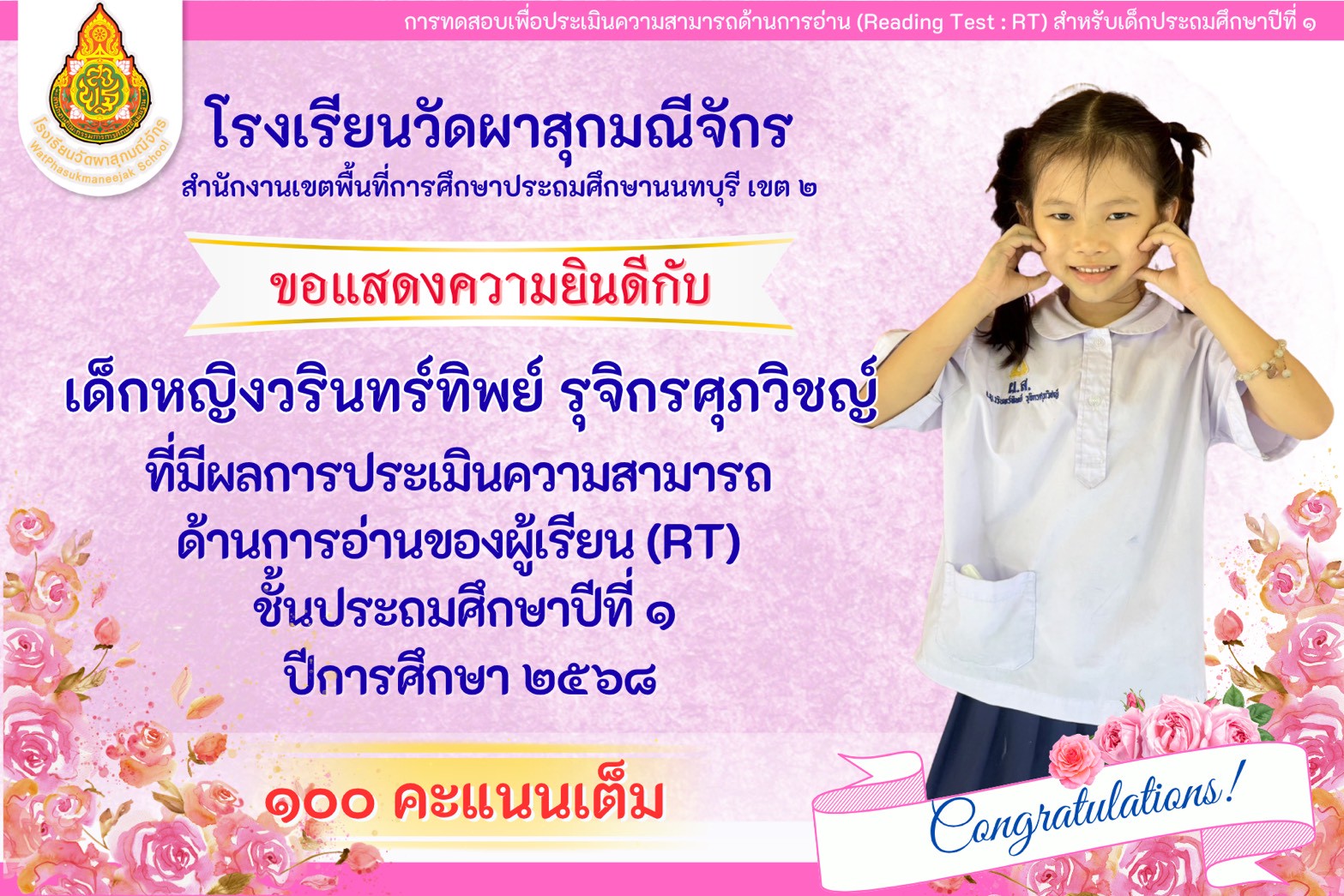 | มีความคิดเห็นว่าโรงเรียนวัดผาสุกมณีจักร เอาใจใส่นักเรียนดีมาก (2999/0) | 10 ก.พ. 58 |