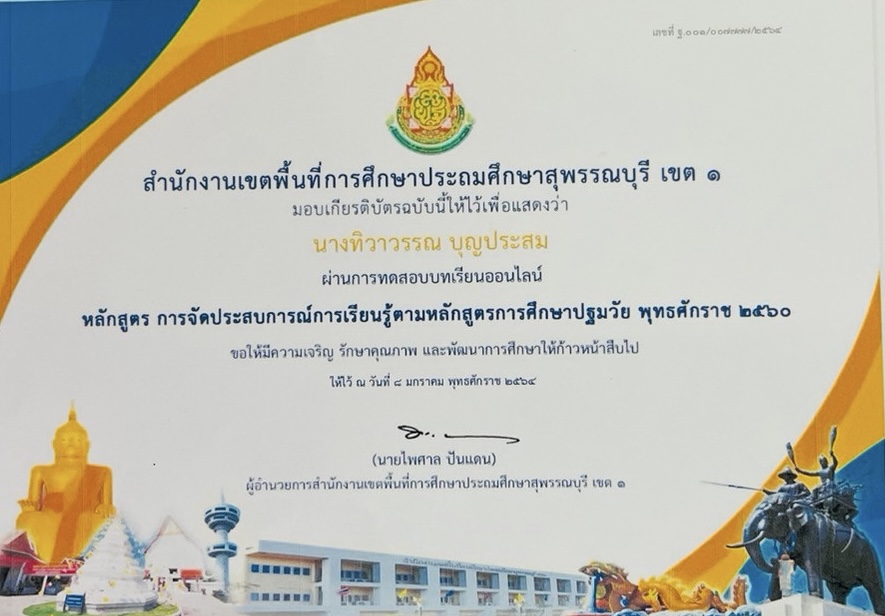 ชื่อผลงาน : หลักสูตรการจัดประสบการณ์การเรียนรู้ตามหลักสตรปฐมวัย พุทธศักราช 2560