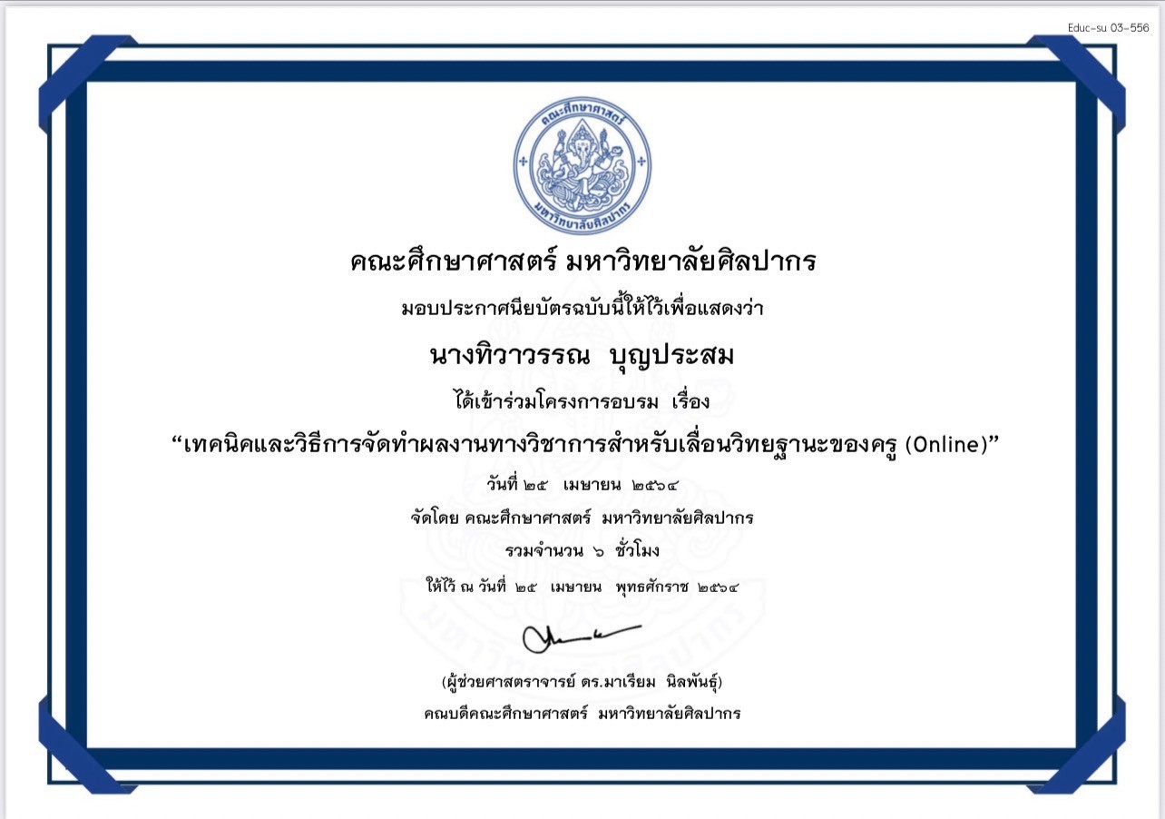 ชื่อผลงาน : เทคนิคและวิธีการจัดทำผลงานทางวิชาการสำหรับเลื่อนวิทยฐานะของครู(Online)