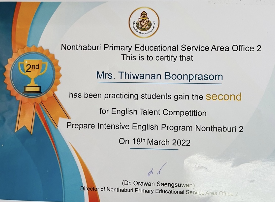ชื่อผลงาน : has been practicing students gain the second for English Talent Competition Prepare Intensive English Program Nonthaburi 2