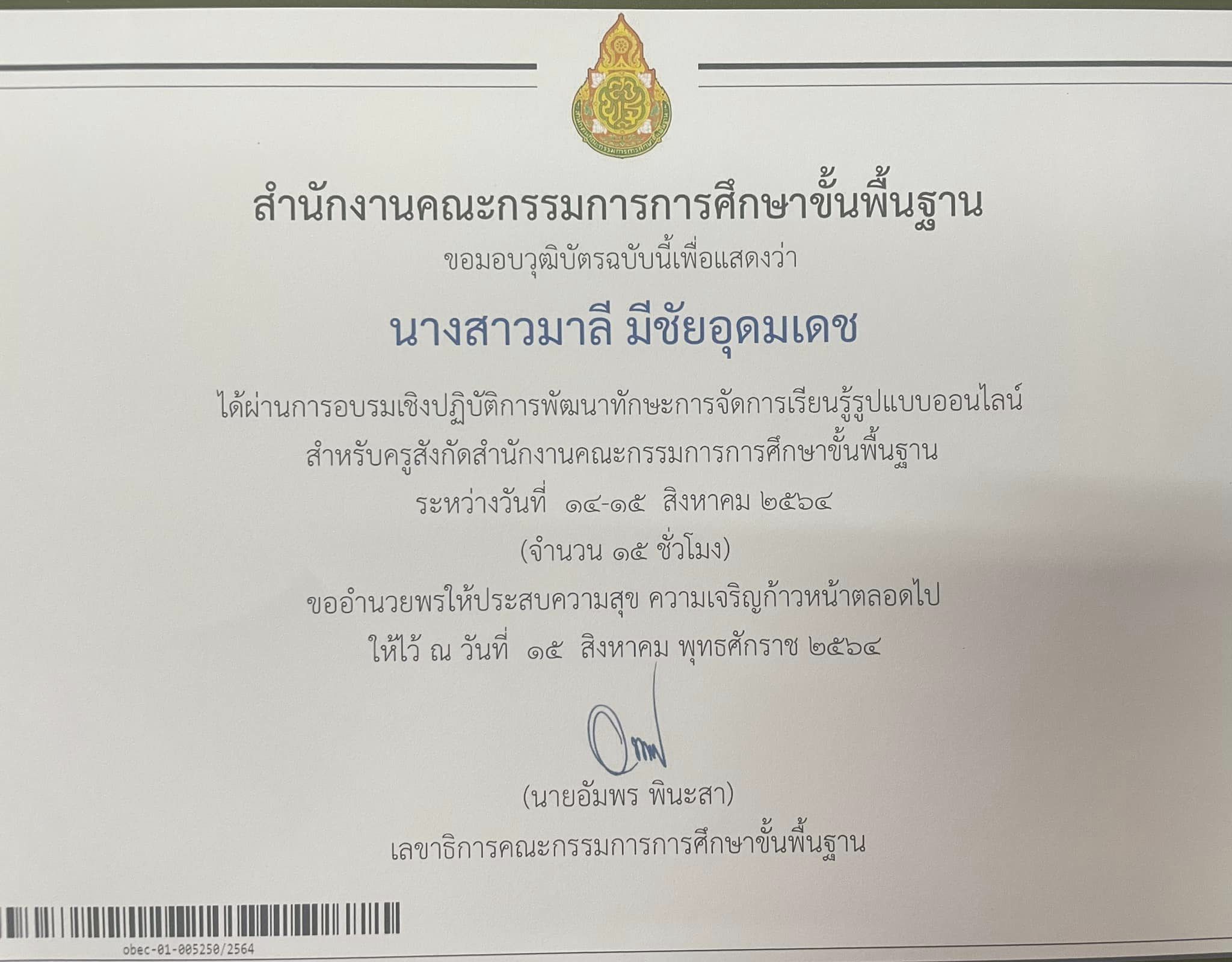 ชื่อผลงาน : การอบรมเชิงปฏิบัติการพัฒนาทักษะการจัดการเรียนรู้รูปแบบออนไลน์ 15 ส.ค.2564