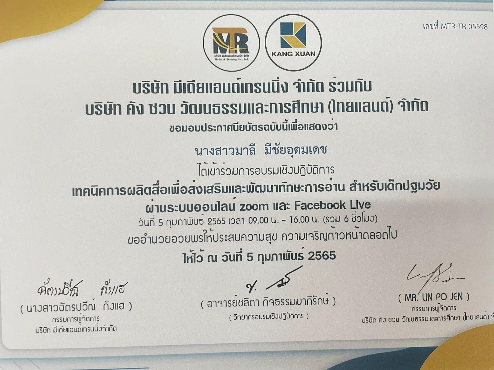 ชื่อผลงาน : การอบรมเชิงปฏิบัติการเทคนิคการผลิตสื่อเพื่อส่งเสริมและพัฒนาทักษะการอ่าน สำหรับเด็กปฐมวัย 5 ก.พ.2565