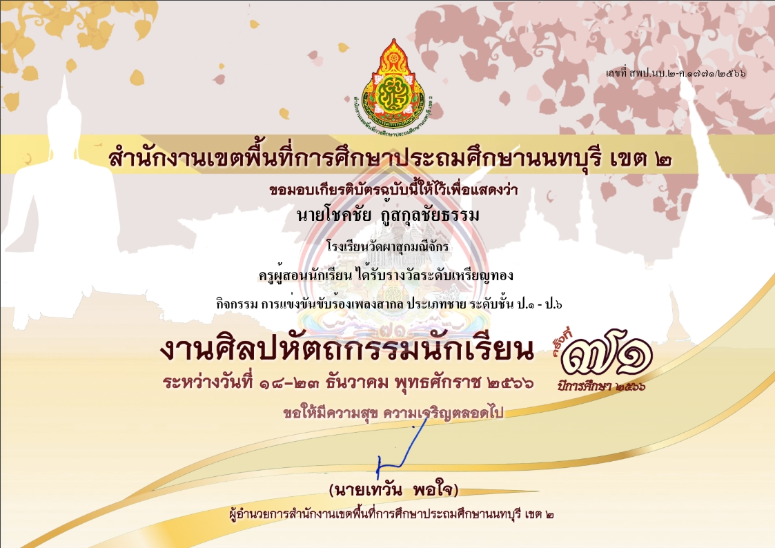 ชื่อผลงาน : เหรียญทองศิลปหัตถกรรม ขับร้องเพลงสากล ชาย ป.1-ป.6 2566