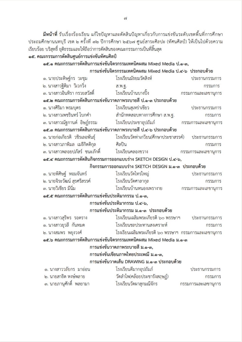 ชื่อผลงาน : กรรมการตัดสิน 4 รายการ (การแข่งขันศิลปหัตถกรรมนักเรียนครั้งที่ 72) 1.การแข่งขันจิตรกรรมเทคนิคผสม Mixed Midia ม.1-3 2.การแข่งขันวาดภาพระบายสี ม.1-3 3.การแข่งขันเขียนภาพไทยประเพณี ม.1-3 4.การแข่งขันวาดเส้น DRAWING ม.1-3